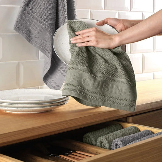 Jogo de 3 Panos de Copa Karsten Cuisine Branco e Verde 100% Algodão 46cm x 65cm