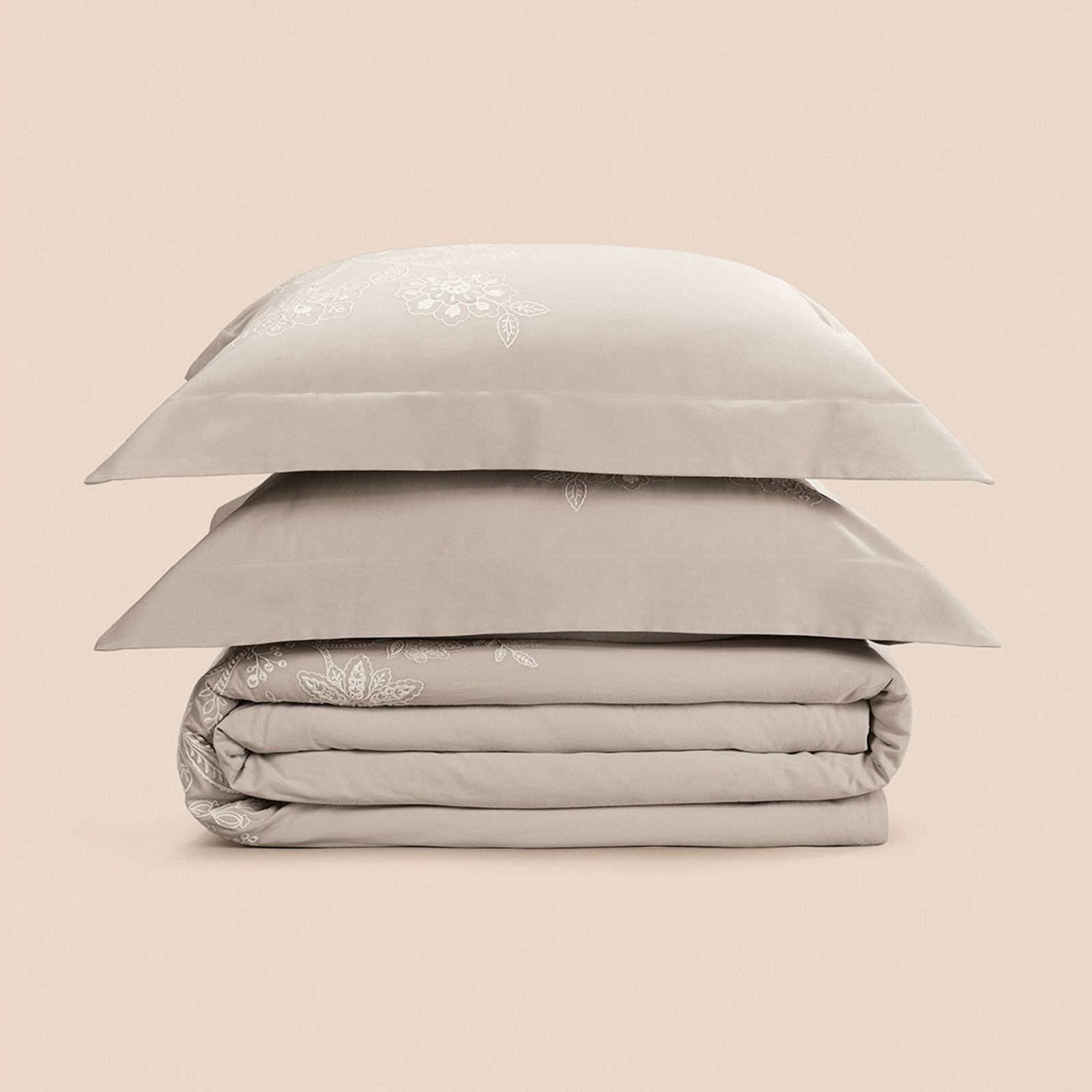 • Acabamento Premium das Fronhas: As fronhas possuem três abas de 7 cm com o bordado espelhado e fechamento em zíper, garantindo um acabamento refinado e prático.