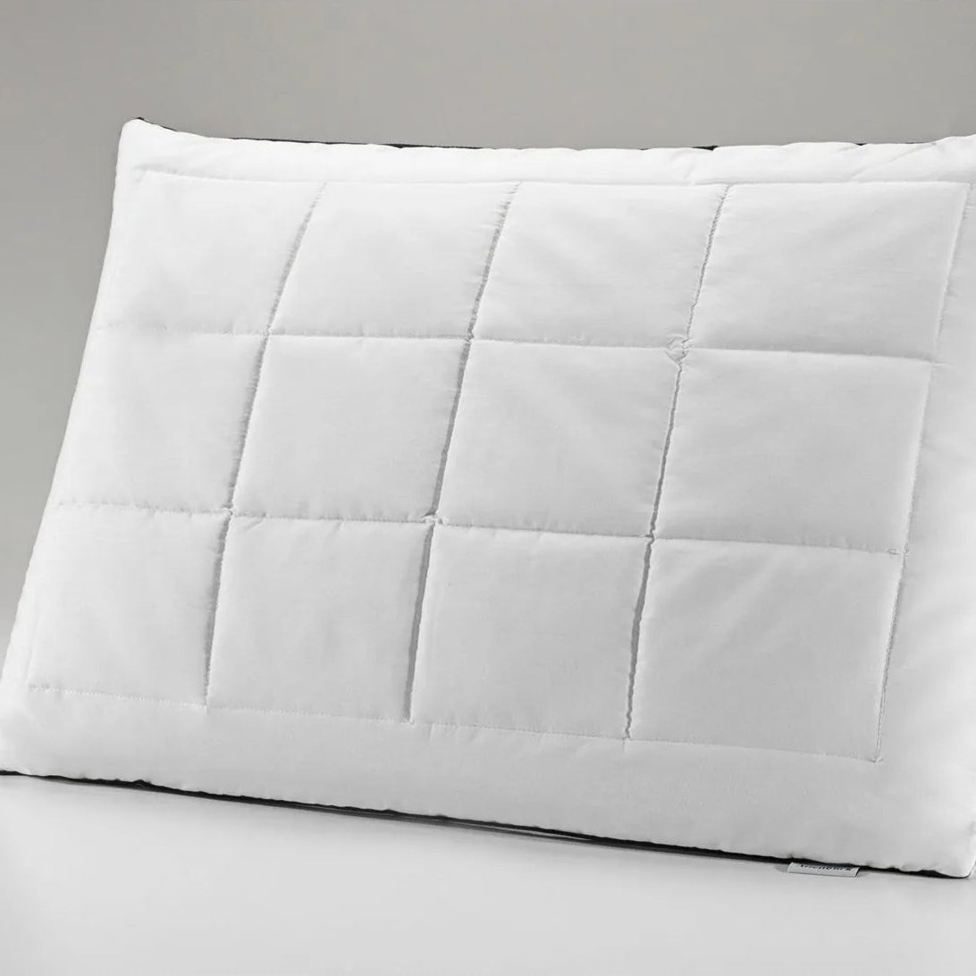 O grande diferencial desta peça está em seu revestimento em Percal 180 fios, confeccionado em 100% algodão, que garante um toque fresco, suave e altamente respirável. O tecido de alta qualidade impede que o enchimento escape e proporciona uma barreira natural contra a umidade, mantendo o travesseiro sempre agradável e com temperatura regulada.