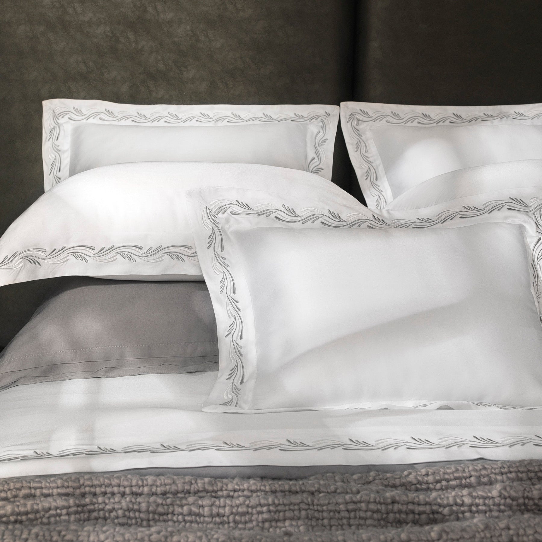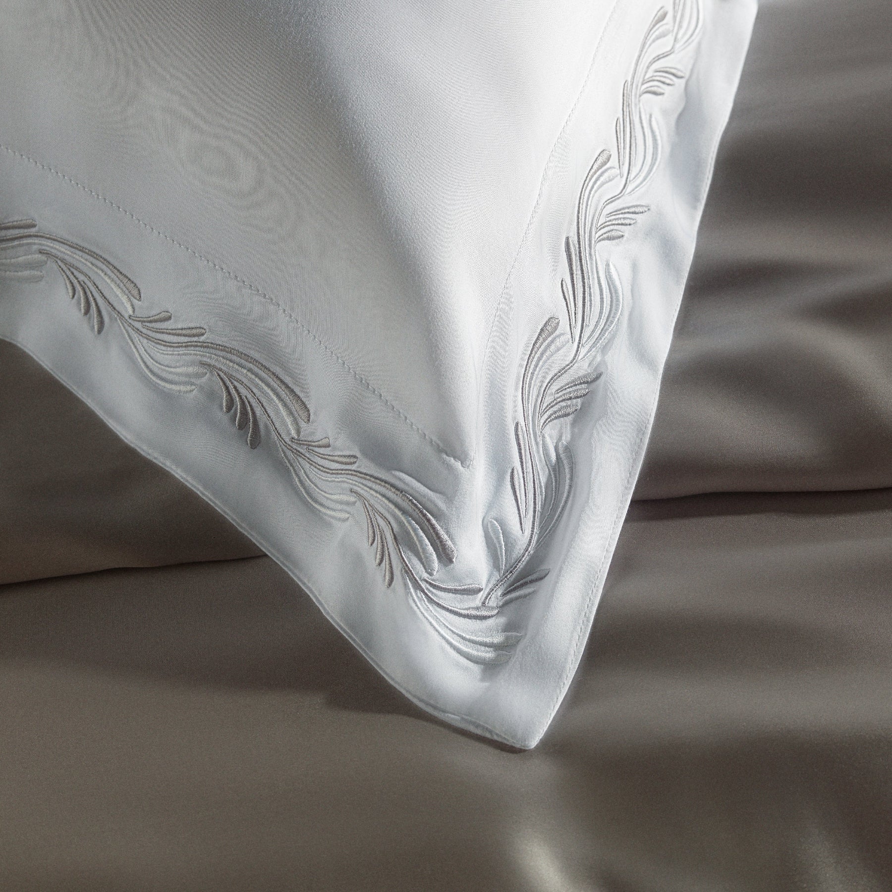 O grande diferencial desta peça reside em sua composição nobre: confeccionada em 100% Cetim de Bambu 300 Fios, ela oferece um toque extraordinariamente sedoso, brilho discreto e uma respirabilidade superior, característica das fibras naturais premium. O design é enriquecido por um bordado delicado nas abas que remete ao movimento das ondas, adicionando uma camada de sofisticação tátil e visual que eleva o padrão de qualquer composição de cama ou living.