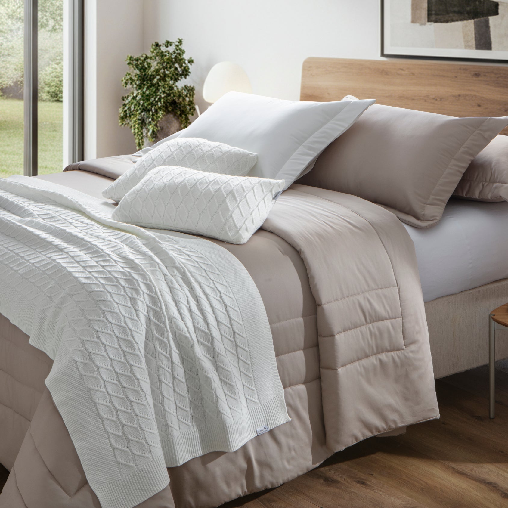 Confeccionada inteiramente em 100% Algodão, a almofada Vivat garante uma experiência tátil natural, macia e antialérgica. O formato "rinzeira" (30x50cm) é um dos favoritos dos designers de interiores para conferir suporte lombar e servir como o toque final de mestre em arranjos de almofadas. Unindo a tradição de qualidade da Kacyumara ao design atemporal do tricô, esta peça é sinônimo de bem-estar e refinamento para a sua casa.