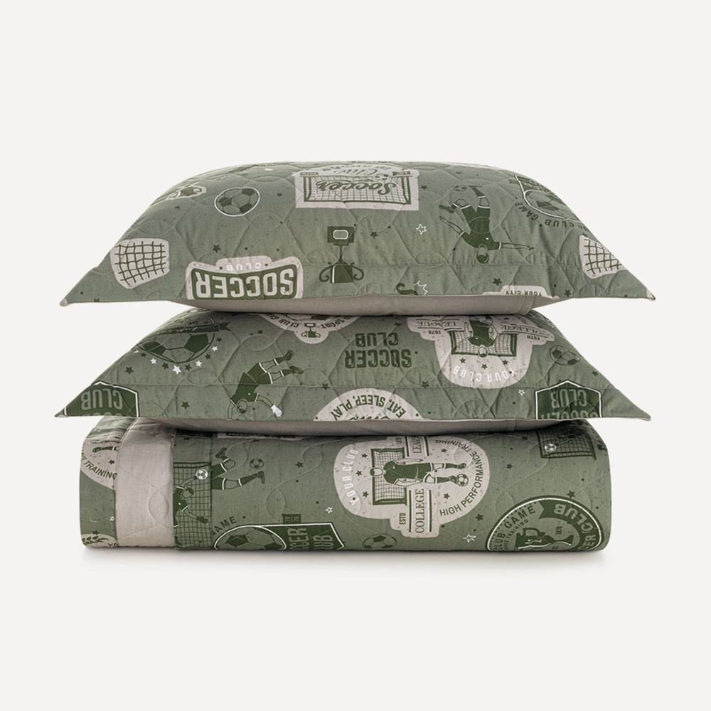 O Jogo de Colcha Casal Futebol é ideal para quem busca conforto e um estilo com temática esportiva marcante. Composto por um visual urbano e cheio de movimento, ele transforma o quarto em um espaço lúdico e cheio de personalidade.