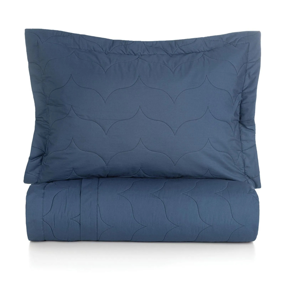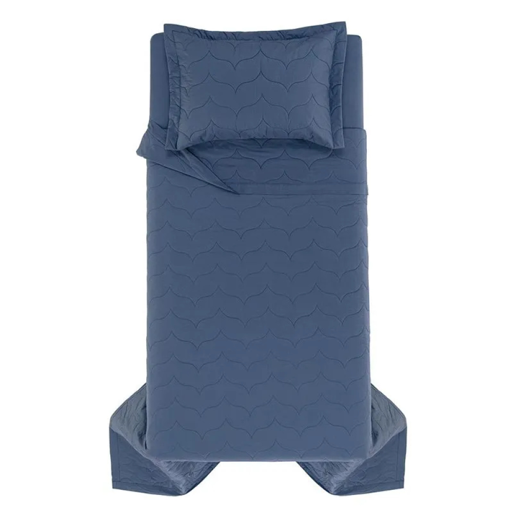 Colcha Solteiro com Porta Travesseiro 200 Fios Tom Marinho