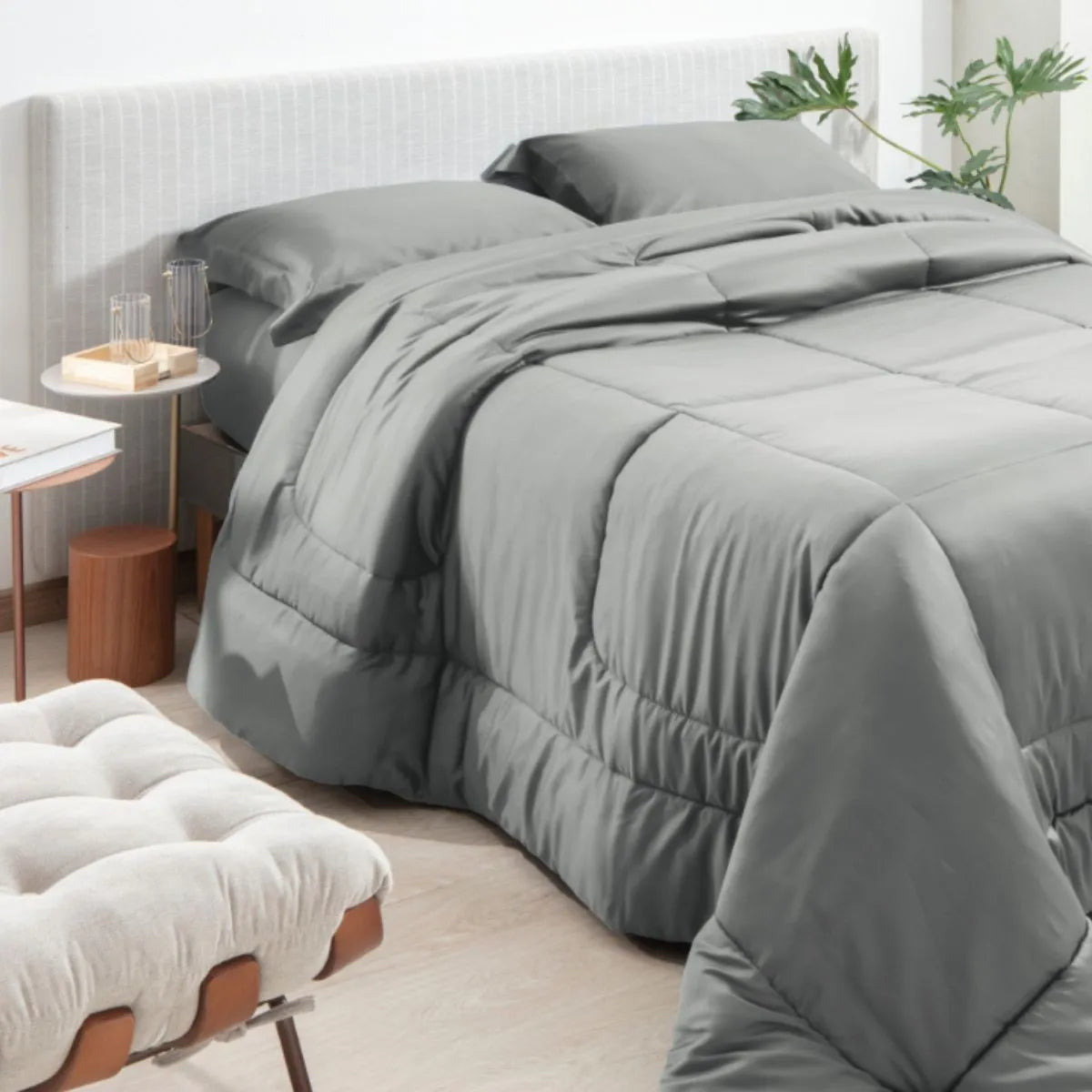Confeccionado em Percal 300 Fios de 100% Algodão, o edredom proporciona uma experiência de conforto térmico superior e um toque acetinado incomparável. A tecnologia de acabamento da linha Satinée garante o toque "peach skin", uma textura aveludada e extremamente macia que convida ao repouso. Além da beleza estética, a alta densidade de fios assegura que o tecido seja resistente, respirável e possua propriedades antipilling, mantendo a superfície lisa e livre de bolinhas por muito mais tempo.