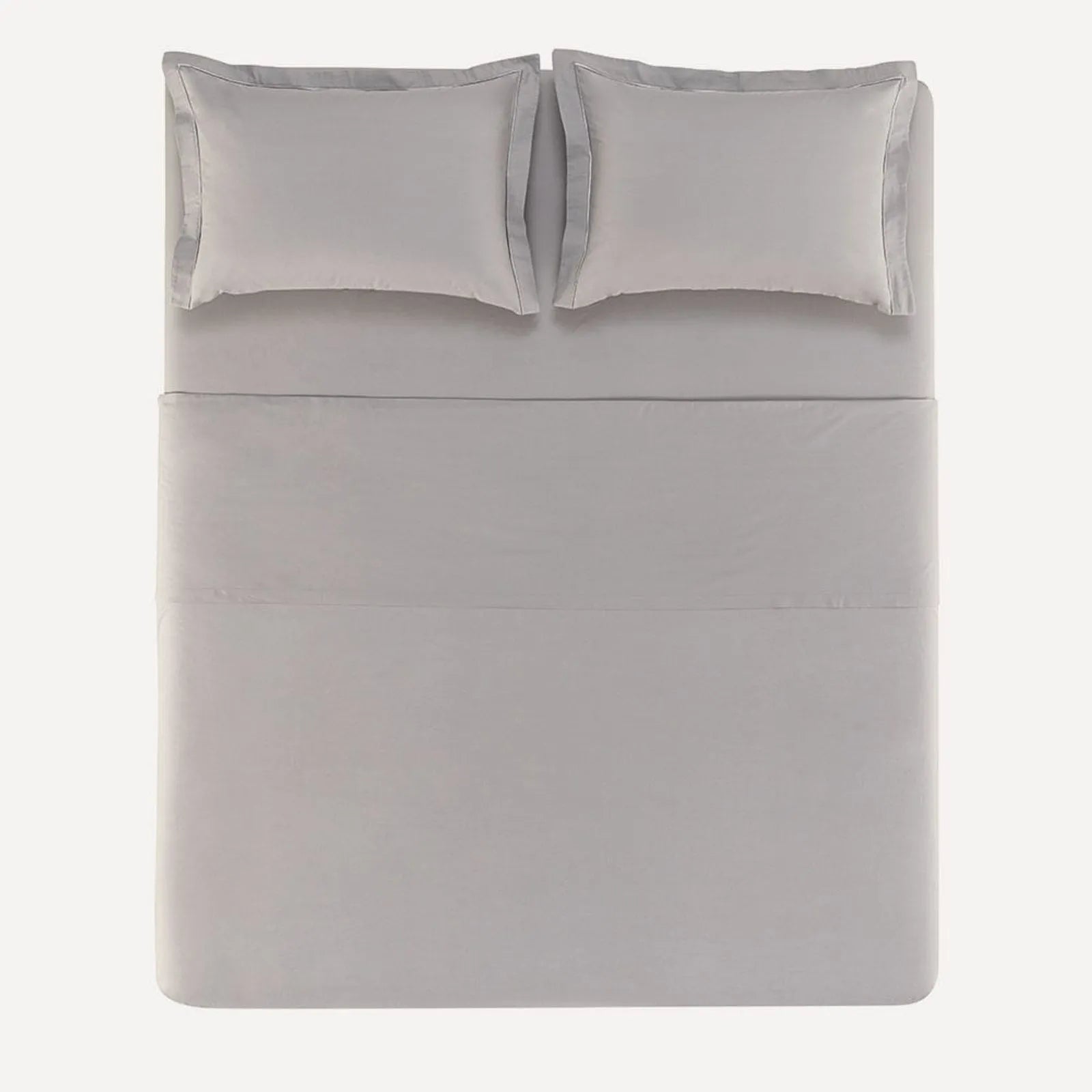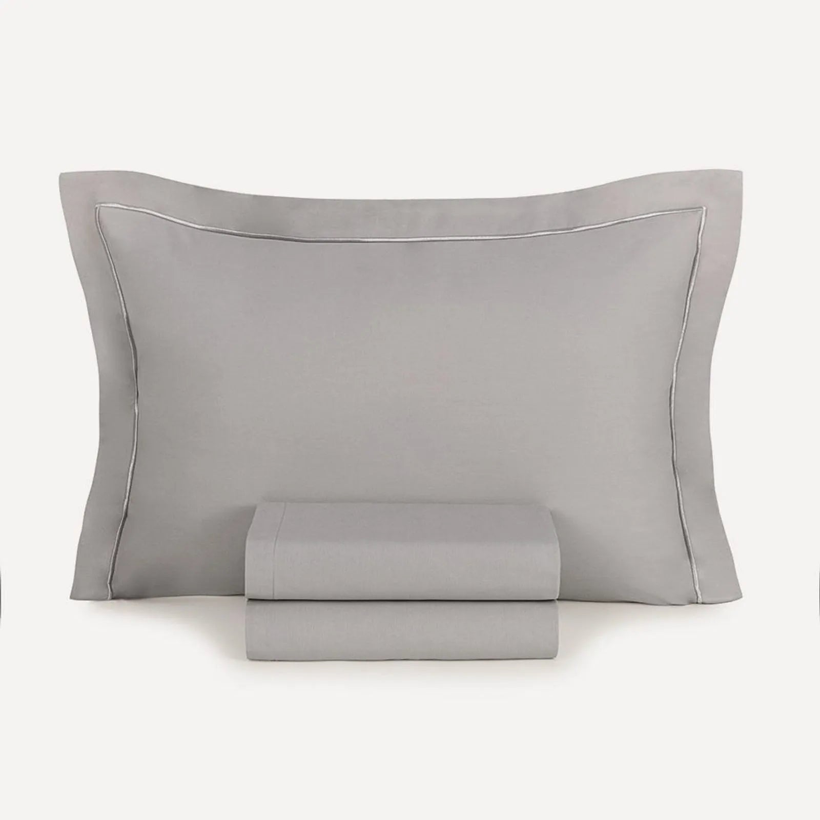 O Jogo de Cama Deliz, da linha 200 Fios da Karsten, é a escolha ideal para quem busca um dormitório com estética minimalista e toque de "cama de hotel". Com um design clean e sofisticado, o modelo na combinação de cores Titânio e Cinza apresenta um visual moderno e versátil, que se adapta facilmente a diferentes estilos de decoração. O grande diferencial está no acabamento em ponto royal nas fronhas e no sobrelençol, um detalhe discreto que confere elegância e um ar contemporâneo ao enxoval.