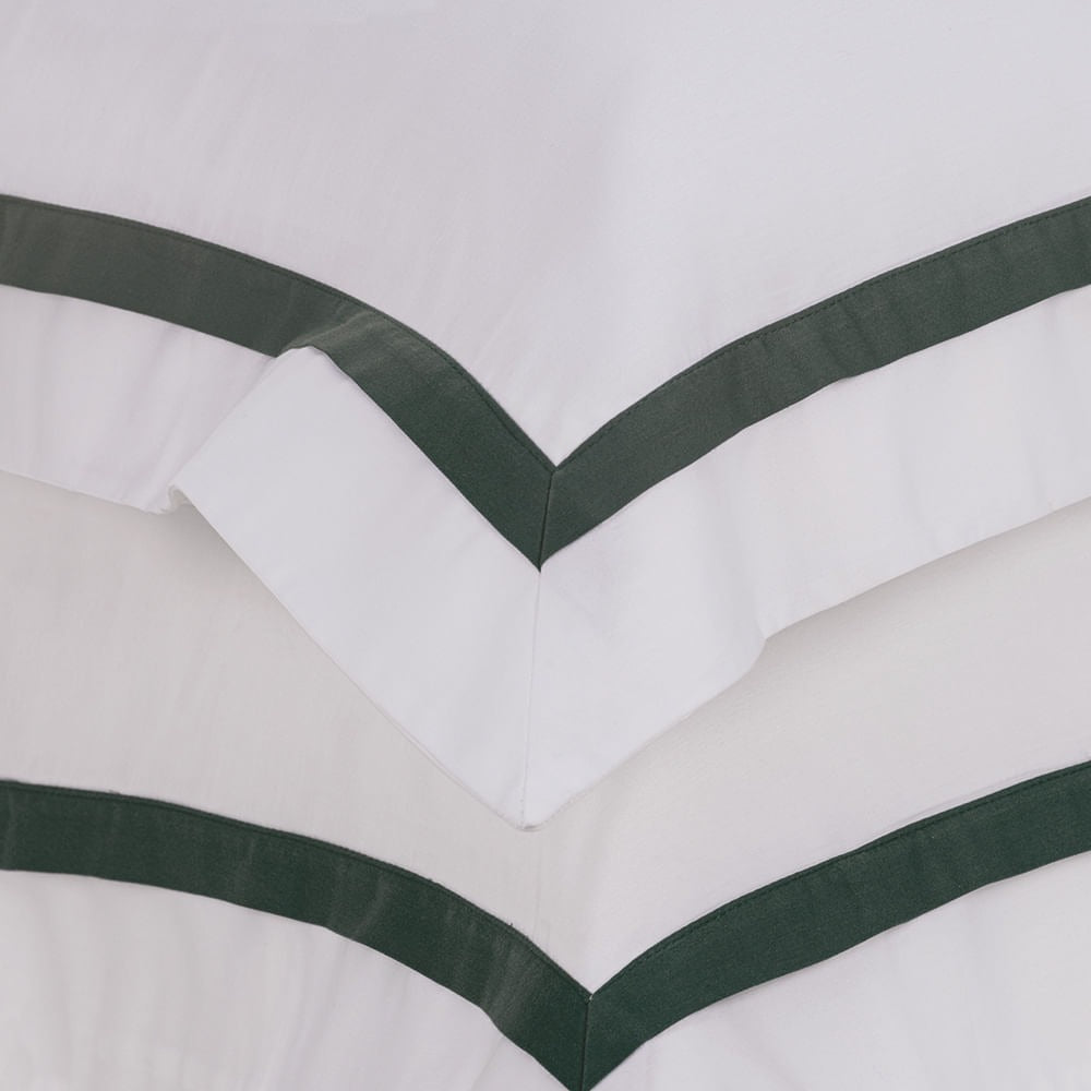 Alfaiataria Dupla: As 3 abas duplas nas fronhas e a pala dupla no sobrelençol são detalhes de alta sofisticação, conferindo estrutura e um visual moderno.