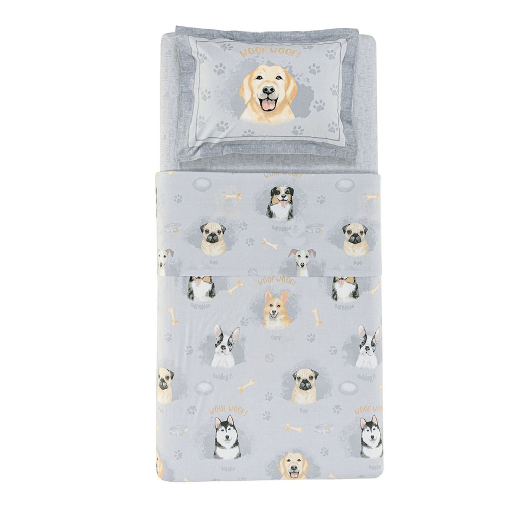 Jogo de Cama Infantil Solteiro 200 Fios 100% Algodão Dog Karsten
