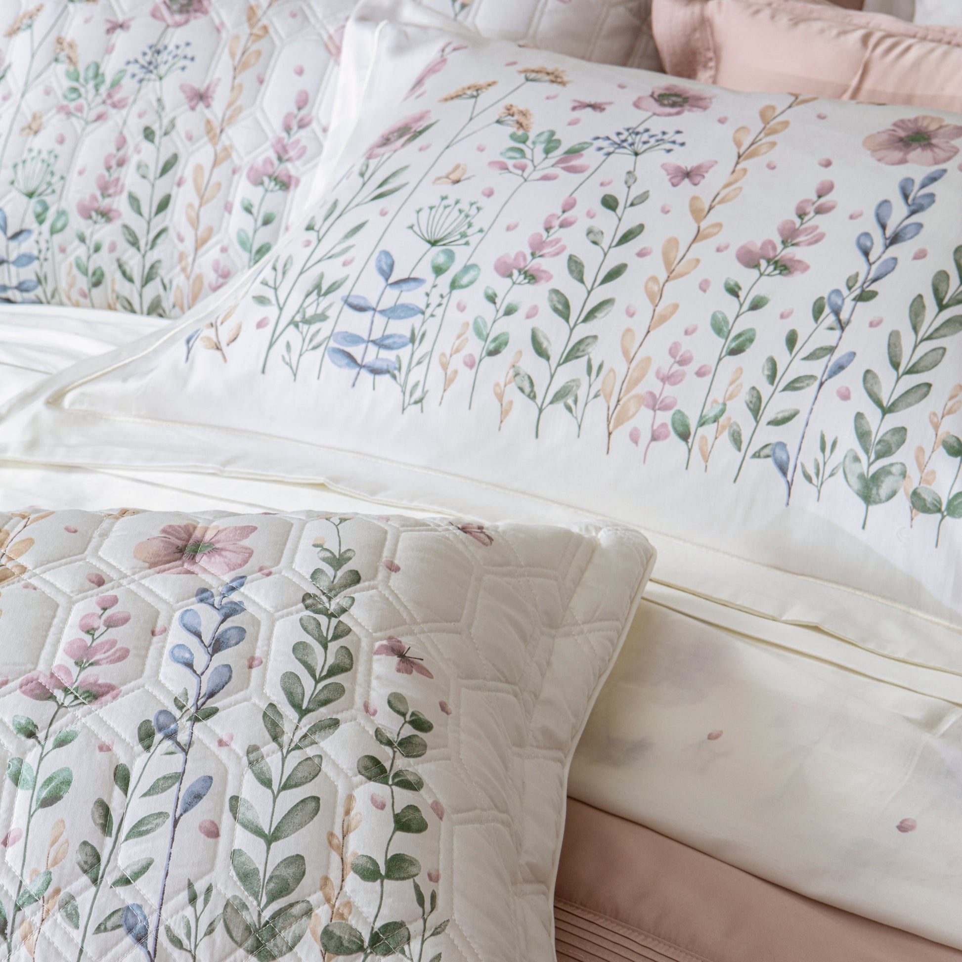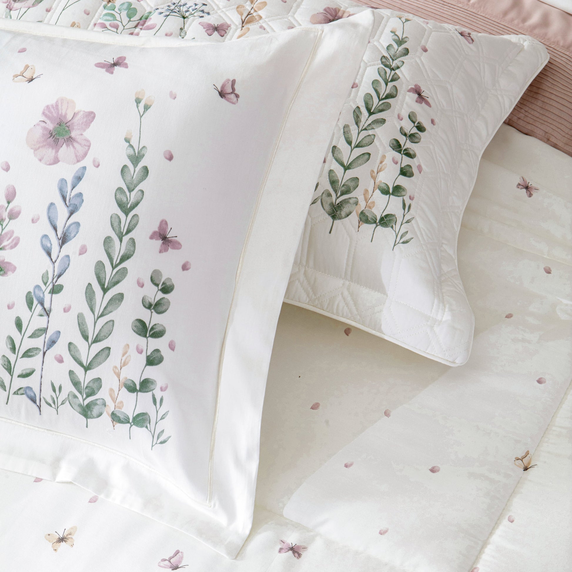 • Design Estampado: A estampa Melis apresenta um padrão floral delicado, ideal para trazer um visual alegre e personalizado ao quarto King.