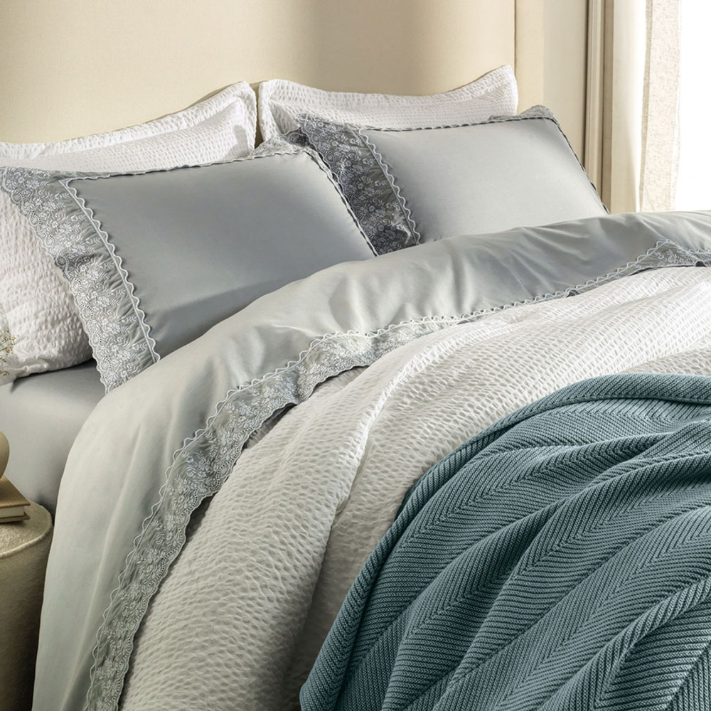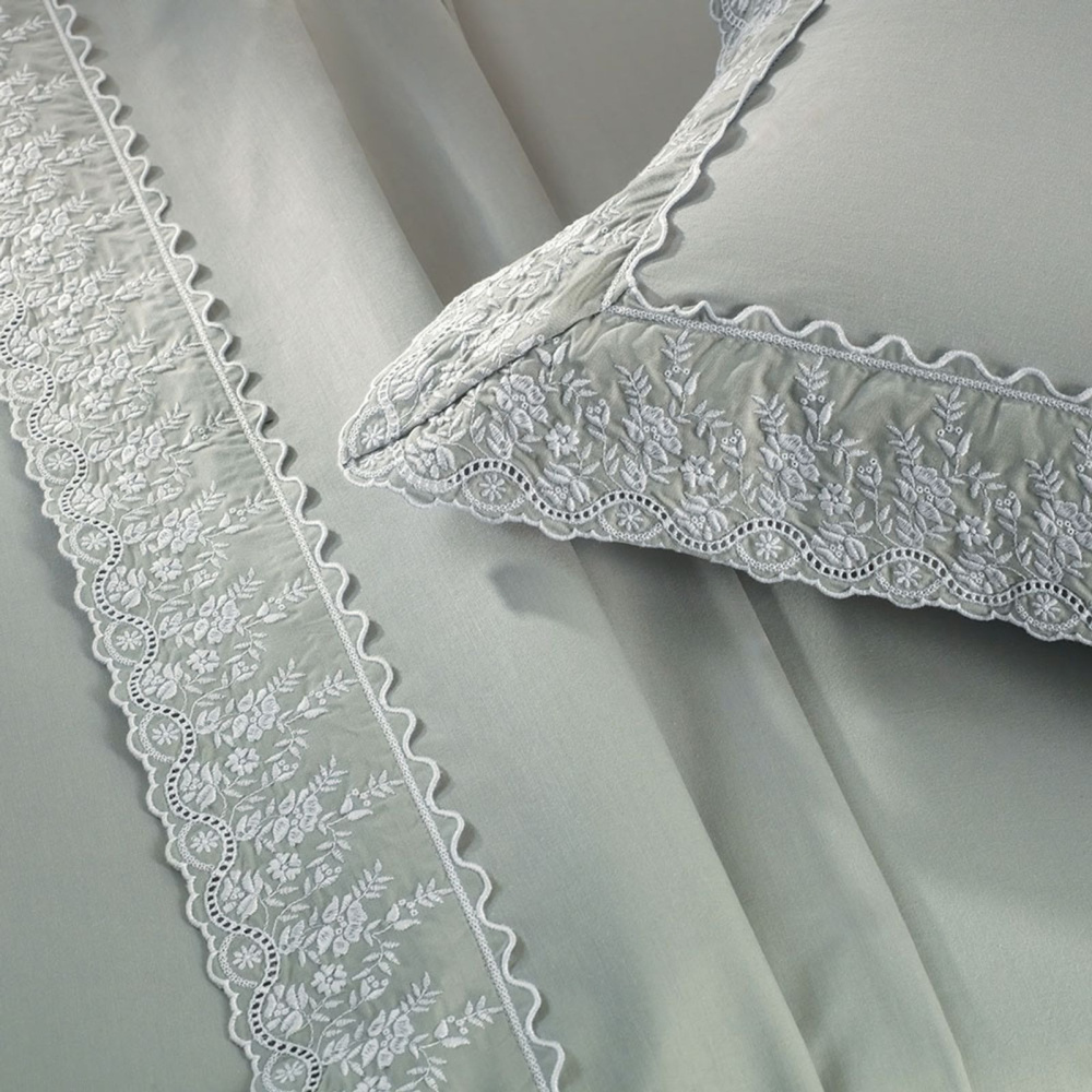 Jogo de Cama Queen 200 Fios 100% Algodão Antônia Mineral/Branco Karsten
