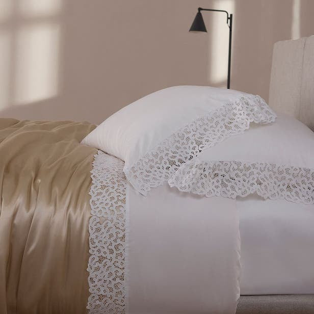O Jogo de Cama Capri da Buddemeyer Luxus é imponente e muito elegante, destacando-se por sua exuberante moldura em renda. Produzido em nobre Cetim 600 Fios de 100% Algodão Fio Penteado, este modelo é luxuoso, possuindo um toque perfeitamente macio e sedoso, criado para promover experiências sensoriais inigualáveis.