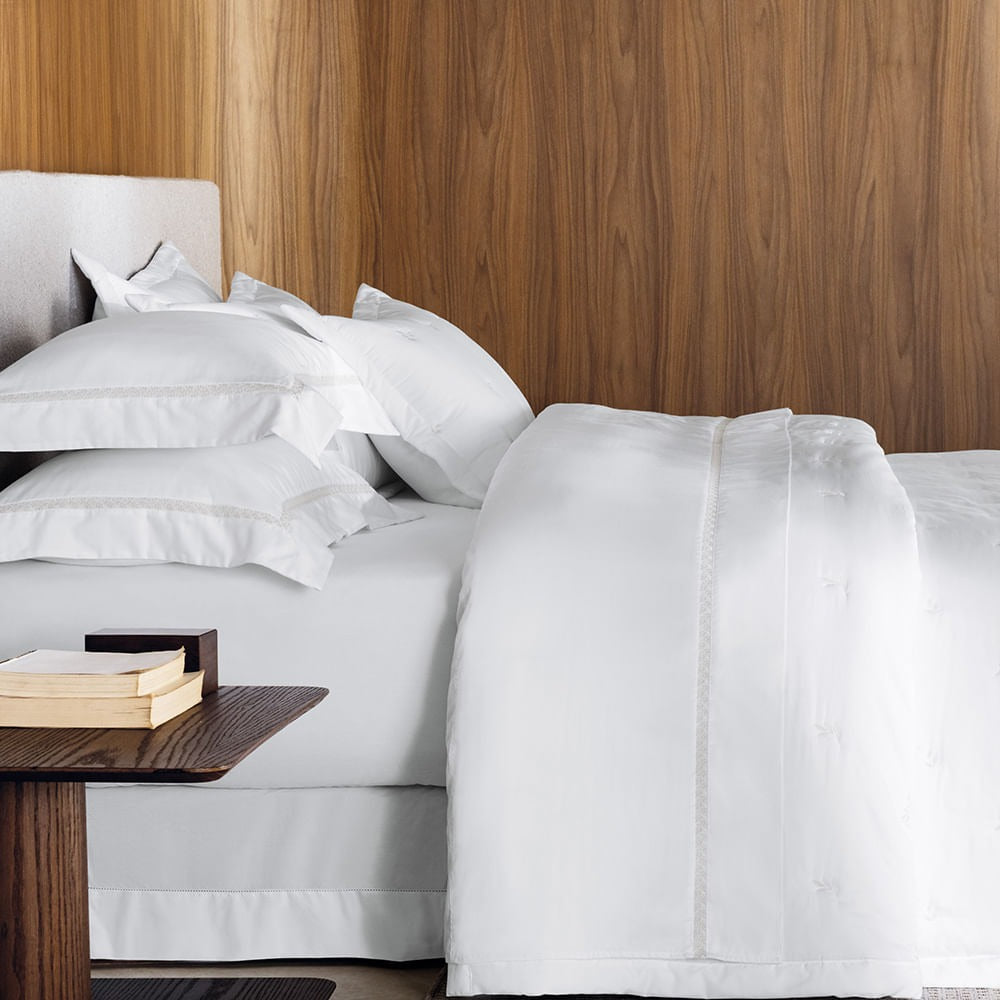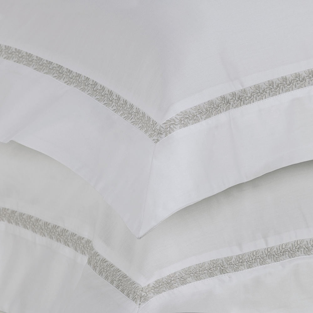 O Jogo de Cama Vitalle Queen evoca a leveza e a poesia das folhas guiadas pela brisa do mar da Sicília, refletida com sutileza em seu entremeio bordado. Confeccionado em Cetim 300 Fios de 100% Algodão Egípcio, este jogo oferece um toque sedoso e luxuoso, resultado de um acabamento sanforizado e mercerizado que une conforto e sofisticação inigualáveis.