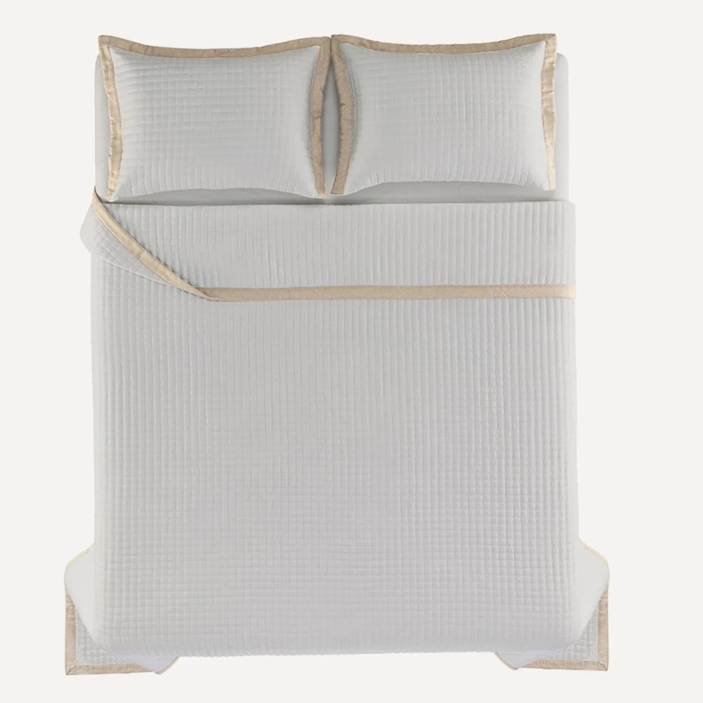 O Kit Colcha Cobre-Leito Karsten Amaro transforma o quarto com sua combinação de simplicidade sofisticada e texturas acolhedoras. O tecido branco com leve brilho traz leveza ao ambiente, enquanto o acabamento em polilinho bege oferece um toque natural e elegante. A textura micromatelassada cria uma superfície aconchegante e bem estruturada, valorizando cada dobra do tecido. O contorno com bordo de 5cm realça o caimento e traz destaque ao design limpo e atemporal. Com cantos quadrados e toque suave, é ideal para quem busca conforto com estilo no dia a dia.
