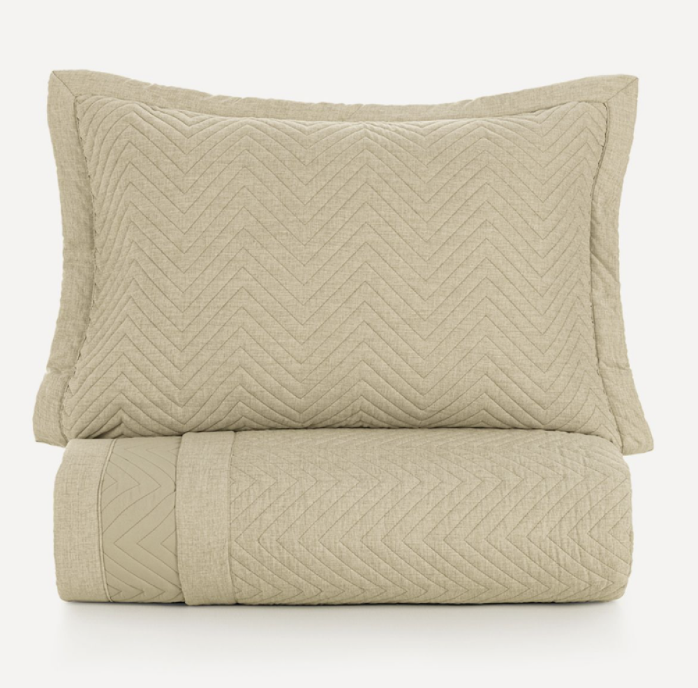 A colcha Arturo é ideal para ambientes sóbrios e sofisticados. Seu matelassado geométrico discreto, combinado ao tecido com efeito mesclado, garante personalidade sem excessos. Nas cores giz, um tom de bege acinzentado, e concreto, um cinza mais escuro e fechado, ela se destaca pela elegância sutil. Versátil, compõe camas minimalistas com charme e modernidade, oferecendo equilíbrio visual e um toque acolhedor ao ambiente. Uma escolha refinada para quem valoriza estética e conforto