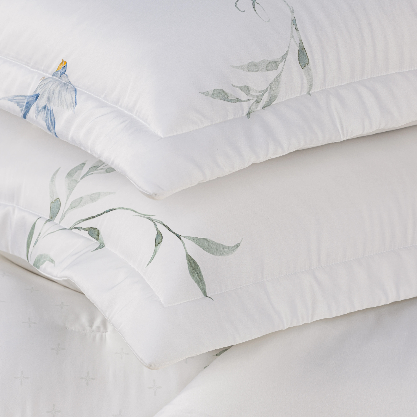 Fibra de Bambu Premium: Uma matéria-prima natural que oferece um toque excepcionalmente macio e um brilho acetinado sutil, garantindo um caimento "líquido" sobre a cama.