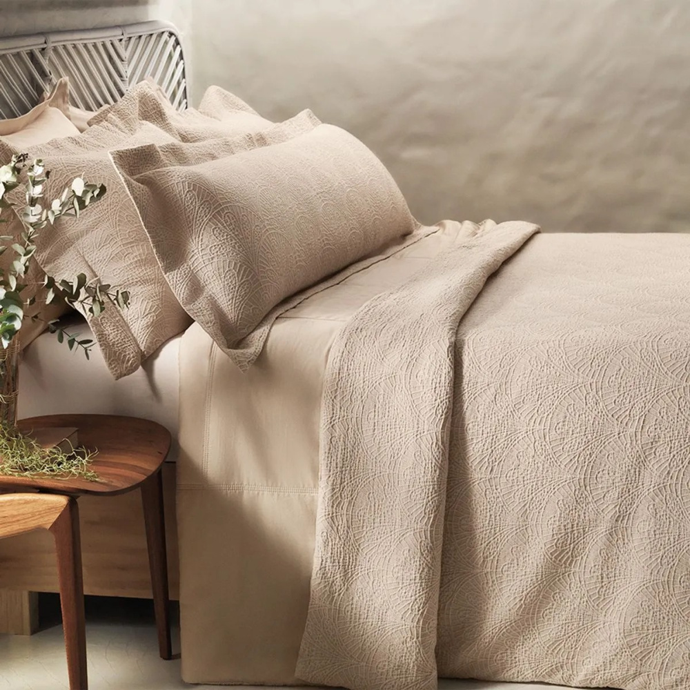 • Versatilidade: A função dupla face permite variar a apresentação da cama, utilizando o lado com desenhos em Jacquard ou o lado liso em Cetim.