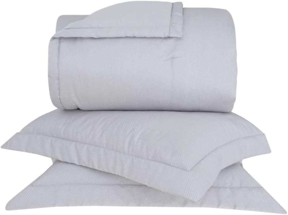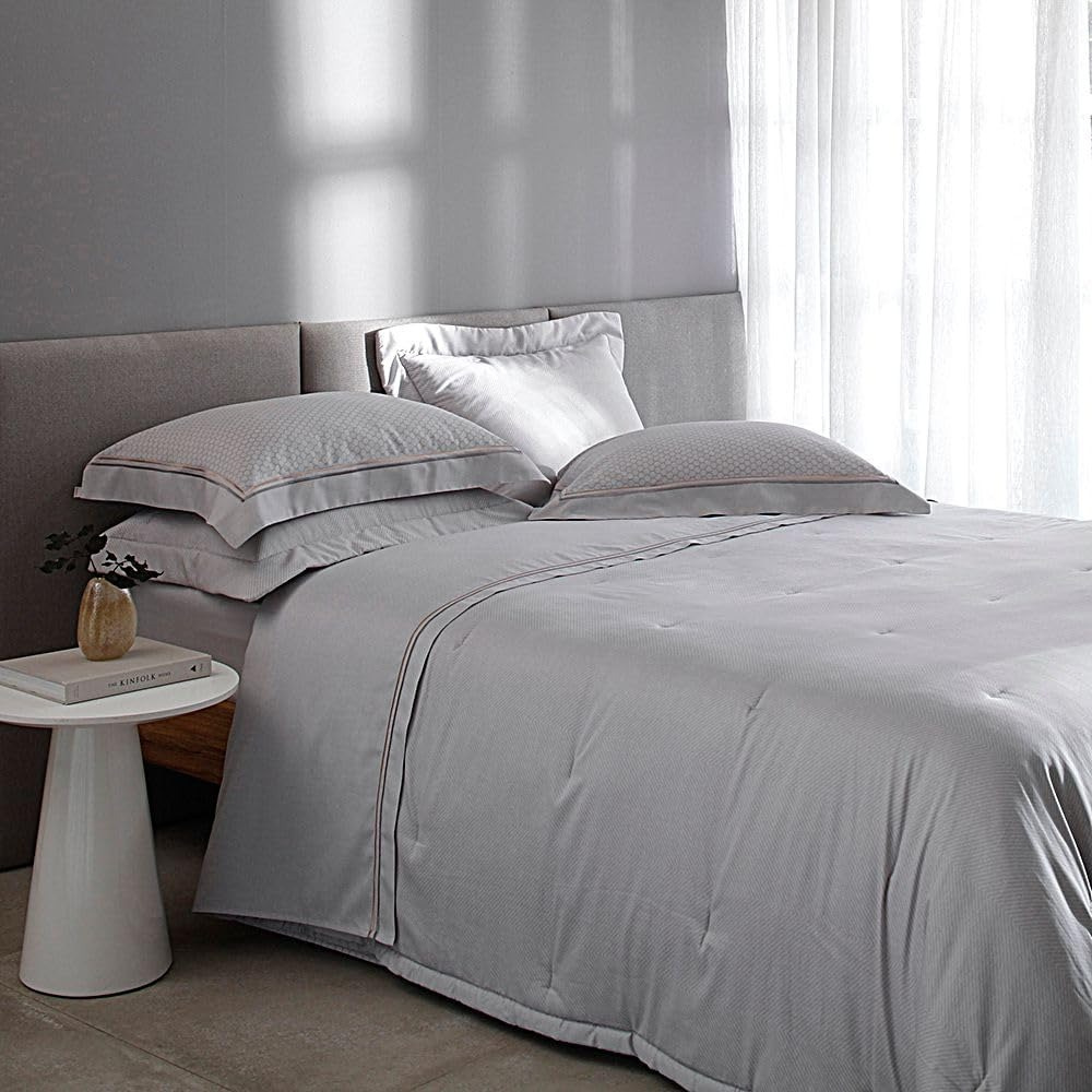 O Kit Colcha King Bud Vision Basilic é moderno e sofisticado, combinando elementos geométricos com estampa texturizada em chevron ton sur ton que confere profundidade. É confeccionado em Cetim 270 Fios de 100% Algodão Fio Penteado (enchimento 100% Poliéster), proporcionando toque sedoso e extremamente macio. O modelo é dupla face. Especificações do Produto Quantidade de Fios: Cetim 270 fios Composição: Tecido 100% Algodão Fio Penteado; Enchimento 100% Poliéster Tamanho: King Itens Inclusos: 1 Colcha, 2 Porta-Travesseiros Medidas: Colcha: 2,90m x 2,50m; Porta-Travesseiros: 50cm x 70cm (2 pçs).