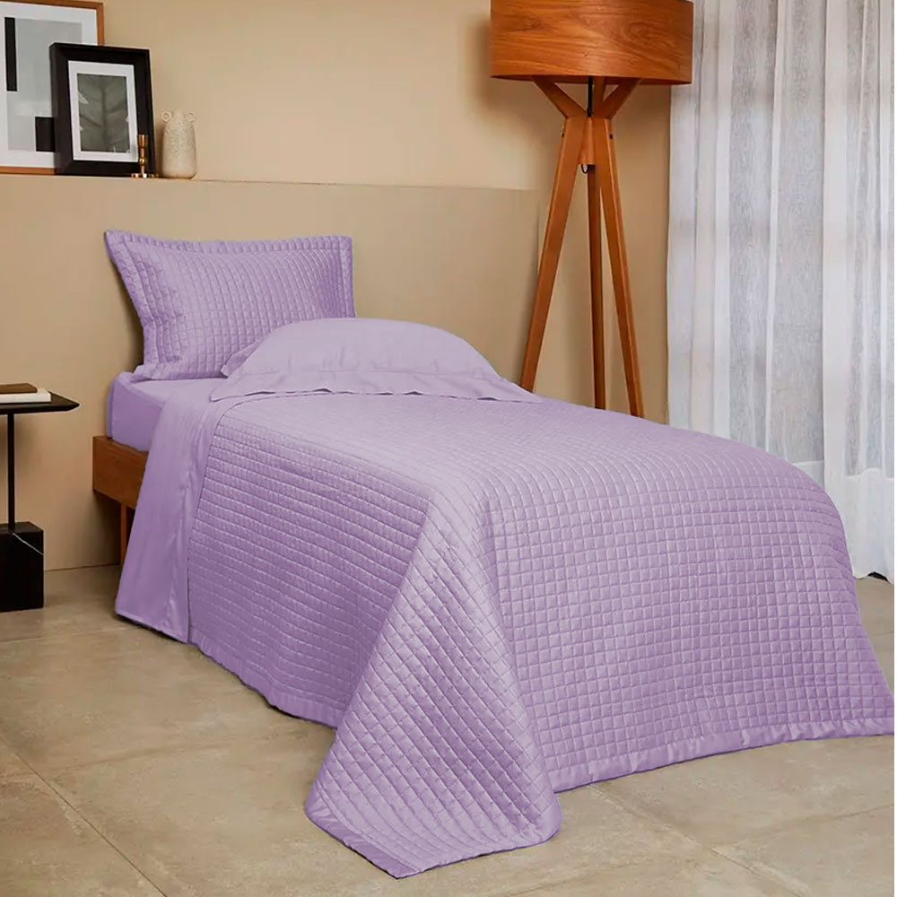 O Kit Colcha Solteiro New Colors é moderno e aconchegante. É produzido em Cetim 270 Fios de 100% Algodão Fio Penteado (enchimento 100% Poliéster), o que garante toque acetinado e maciez. A colcha é dupla face e apresenta um elegante padrão de micromatelassado em mini quadrados. A cor é Rosa. Especificações do Produto Quantidade de Fios: Cetim 270 fios Composição: Tecido 100% Algodão Fio Penteado; Enchimento 100% Poliéster Tamanho: Solteiro Itens Inclusos: 1 Colcha, 1 Porta-Travesseiro Medidas: Colcha: 1,80m x 2,50m; Porta-Travesseiro: 50cm x 70cm (1 pç).