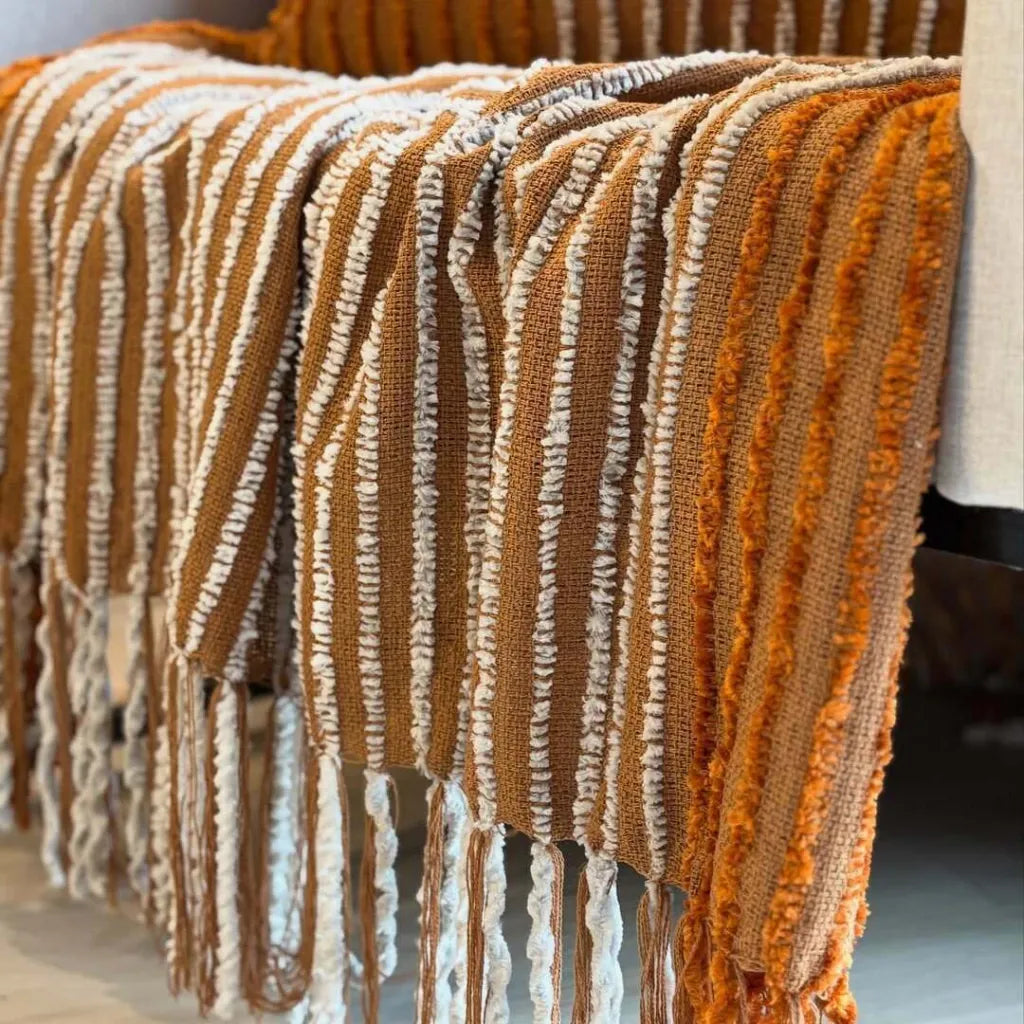 Confeccionada artesanalmente em tear, a peça une o melhor de dois mundos: a maciez e o conforto das fibras naturais do algodão com a resistência e durabilidade do poliéster. Com suas medidas de 1,20m x 1,80m, é ideal para ser utilizada em sofás de dois lugares, poltronas ou como uma peseira charmosa em camas de solteiro. O acabamento em franjas decorativas reforça o seu DNA artesanal, proporcionando aquele acolhimento "comfy" que transforma a casa em um verdadeiro refúgio.