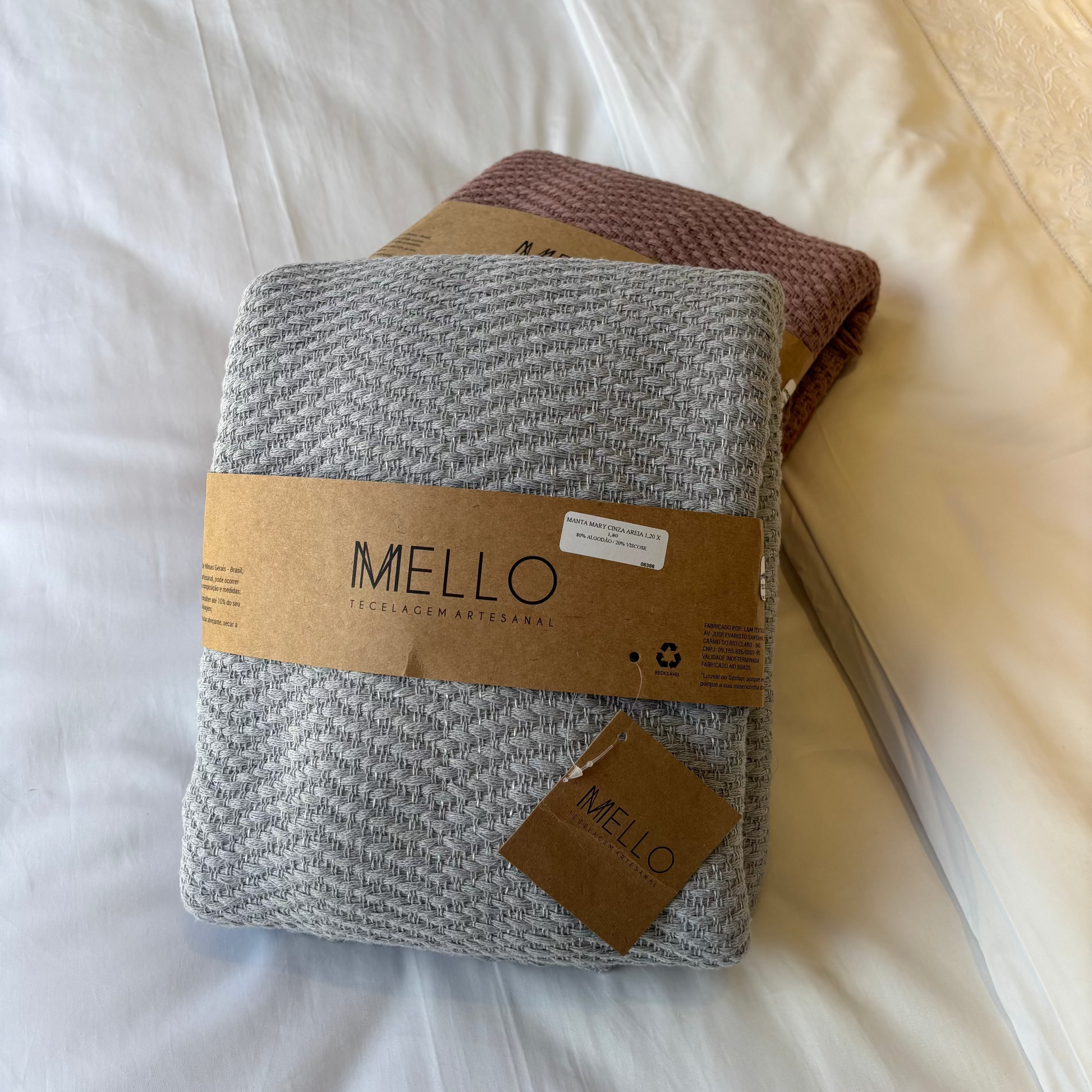 Acabamento: Produção em tear manual, com o toque artesanal característico da Mello Tecelagem, e geralmente finalizada com franjas nas extremidades.