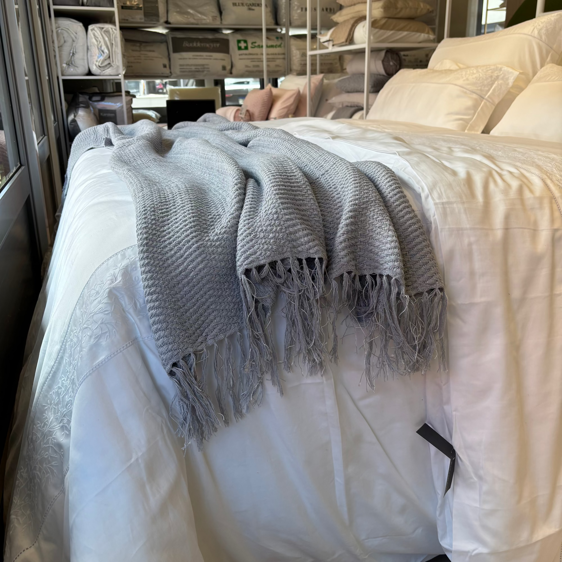 A Manta Mary da Mello Tecelagem é uma peça de produção artesanal, tecida manualmente, que se destaca pela sua maciez e toque suave. É um item decorativo e funcional, perfeito para adicionar conforto e um toque de cor neutra à sala de estar ou ao quarto.