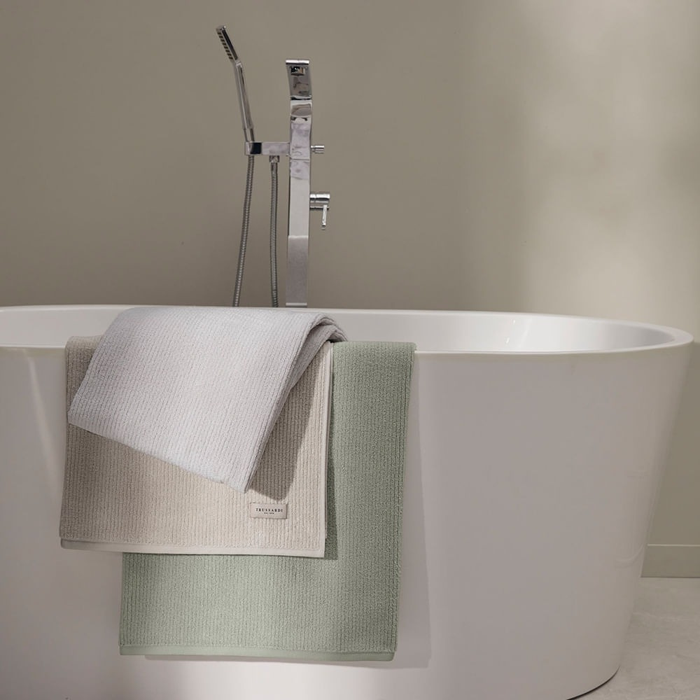 A Toalha de Banho Belluno, na cor Nocciola, é confeccionada em 100% Algodão Egípcio, um dos fios mais nobres do mundo. Com uma gramatura de 540g/m², ela oferece uma textura que abraça a pele, enquanto as tramas caneladas criam uma sensação de conforto e aconchego.