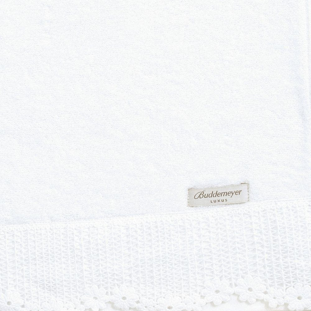 Com um charme atemporal, a peça é adornada por um exuberante guipure geométrico com delicado acabamento floral em scallop na barra, que emoldura o modelo com excepcional refinamento, tornando-o belo e decorativo para o seu banheiro.